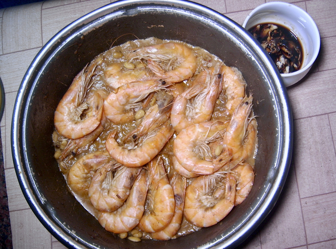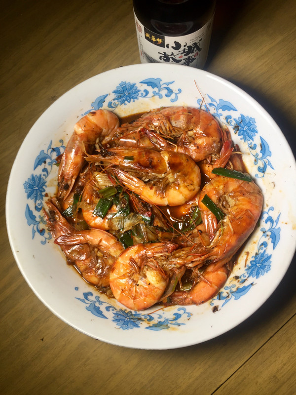 用酱与大虾一起煮开,再弄个蒜蓉醋配搭。