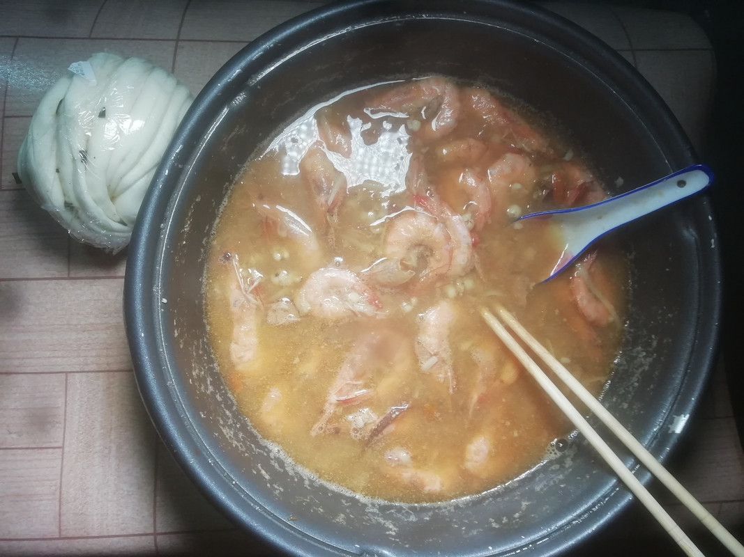晚餐吃“冬阴功”汤配花卷。