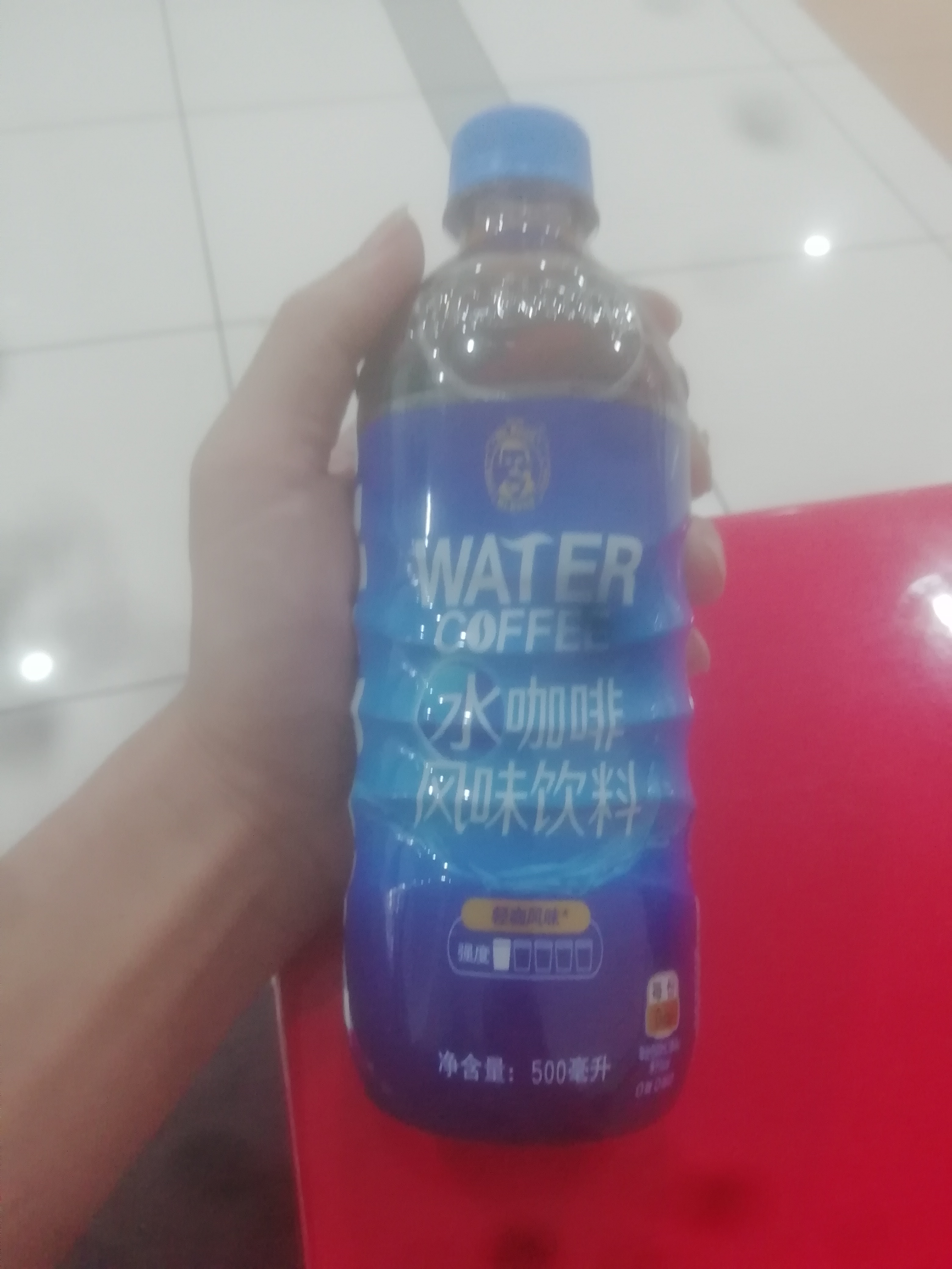 这一瓶有500ml呢。口味是“轻咖风味”。