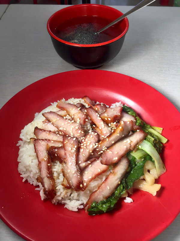 今天在“阿宝烧鹅王”店又吃了一份“叉烧饭”,这次拍摄用苹果6加上了便携灯光打光: