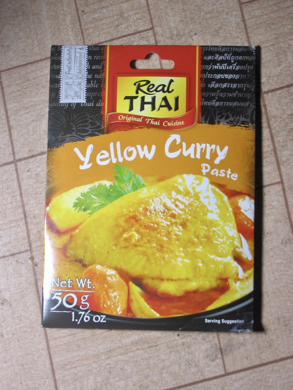 泰国原装进口的黄咖喱酱。那些泰式餐馆里的冬阴功菜、咖喱菜都是这样配现成酱料做出来的。开泰式、墨西哥式……西餐馆实际上很简单。