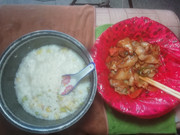 早餐稀饭配猪头皮。