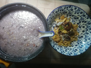 早餐吃稀饭配泡菜。昨天从有电脑的家里取了一碗卤肉蛋,又备份了去年的数据。