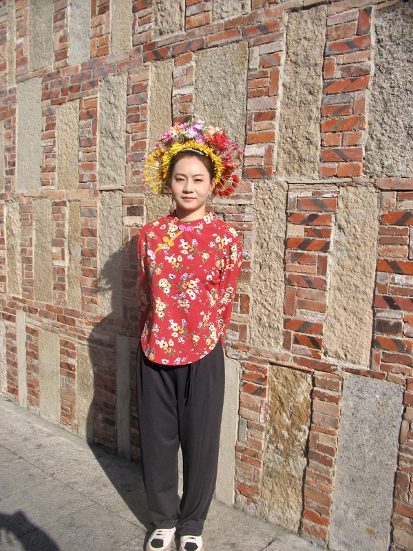纯正的惠安女装束是这样的。那些茬“簪花”照片上的装束是汉服而不是纯正的惠安女装束。