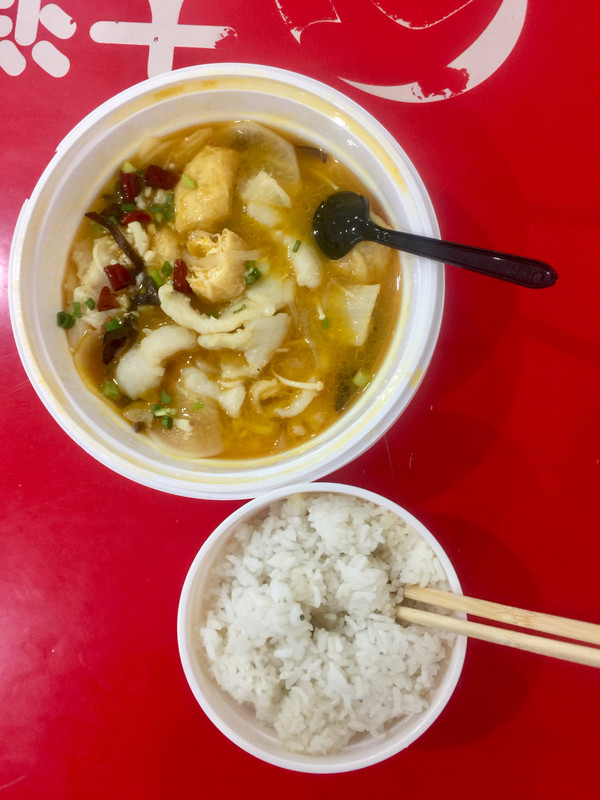 这份¥20的“酸汤鱼”也是这样。加了几个豆腐泡?加一点豆腐泡再加一点白萝卜片,看起来份量还挺大的。