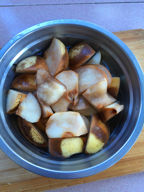 Slicing the pears.