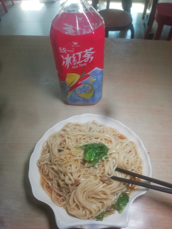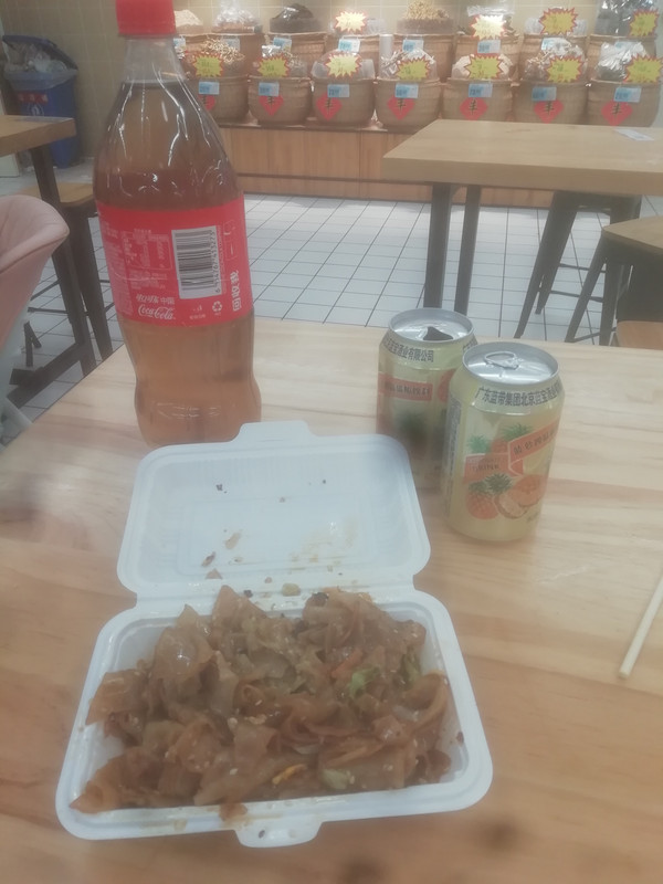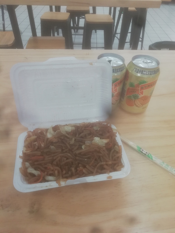 先去社区街道爱心点灌了一瓶茶水,再去大润发买了一份“炒河粉”和两罐“菠萝啤”。苦逼的我就这样对付了一顿午餐。而你们有工作的人,至少要吃个牛肉面吧!现在牛肉面正常的一碗要¥35。