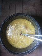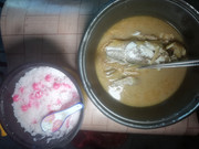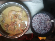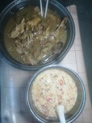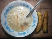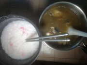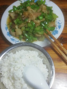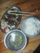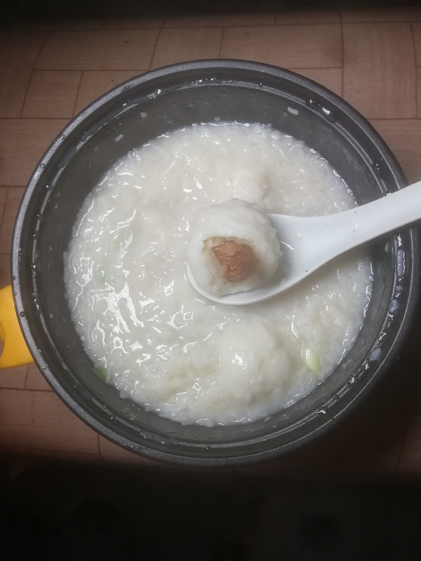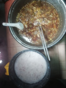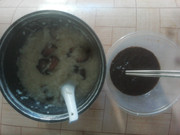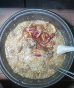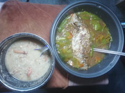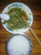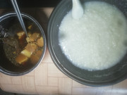 午餐吃稀饭配炣肉鱼。