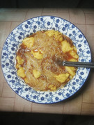 姜用油爆一下,煎蛋一个,加入面线一起煮,起锅时加一勺老酒。这是福州的一个老牌小吃。