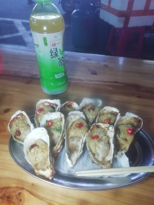 工业区烤生蚝。一个¥1 ,一份十个¥10诚意满满。