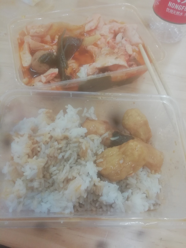 晚餐吃快餐。快餐店里什么都有,水煮鱼、辣椒炒猪头肉、炒猪肺、炸醋肉……毛利率可能是15%。闽北农村来的夫妻二人自雇,毛利率15%利润5%混个小康。在农村里他们只能混个温饱,在城市里他们只能失业。于是,有创业精神的他们开了这个快餐店。开快餐店也是闽北人的一个有计划形成的产业。你看那厨房里柴油灶、大铁锅,跟酒店里的一模一样。这分明是套路,一个快餐店的产业中的配套没备。