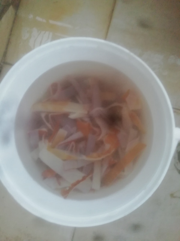 海哲皮要浸泡三回,凉拌前再用冷开水洗一遍。