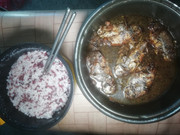 今天是出嫁的女儿回娘家的日子。老父买了一只大乌鸡炖了一锅汤。我顺带打了一碗汤吃了午餐。