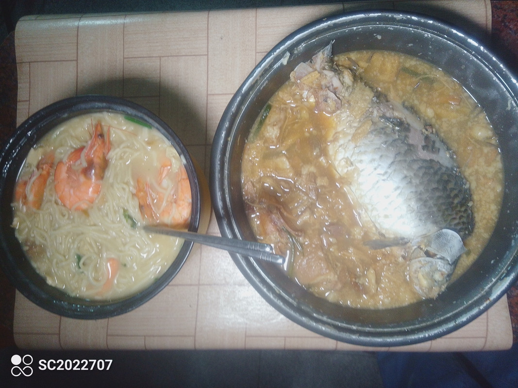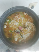晚餐又吃“鱼丸线面”。线面存太多了只能硬着吃下去。