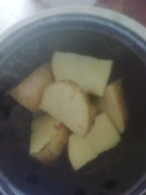 这边厢煮一个土豆。有一个“土豆烧熟了,还有牛肉”的意思。这是毛时代有关食物的“共产主义理想”。现今有多少人可以达到这个标准?有工作、有收入、有遗产的人可以达到,其他没工作、没收入、没遗产的人达不到。