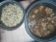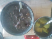 午餐“猪心薏米粥”。我煮这个是想测试一下生猪心要煮多久才能烂?结论是在电饭锅里要煮一个小时。先要把猪心先预水煮一个小时,才能切片炒制。否则一般人咬不动。