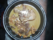 隔天,我把光鸭、茶树菇、卤料包、酱油加在一起“卤煮”了。