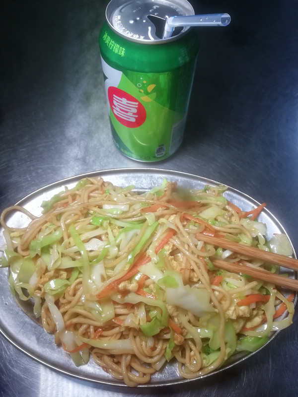 晚餐吃工业区路边摊炒面¥9。