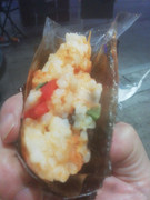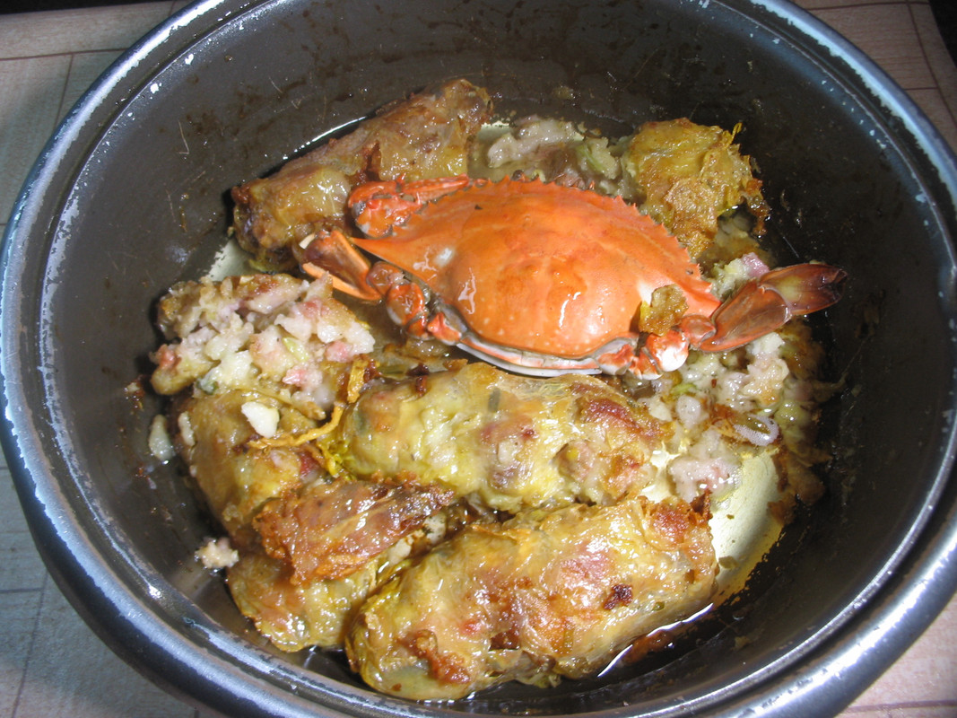 上一个炸鸡卷加蟹仔。为什么要上这道“大菜”?那是因为看到这些公众号上展示的菜肴,不想自己太掉价,得跟它们拼了!