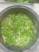 炒韭菜花。昨天去“大润发”看到打折的两捆一起买了。这韭菜花现在是很贵的蔬菜。在清朝农业社会,蔬菜一律很贱价。粮食不足时竟然“瓜菜代”。