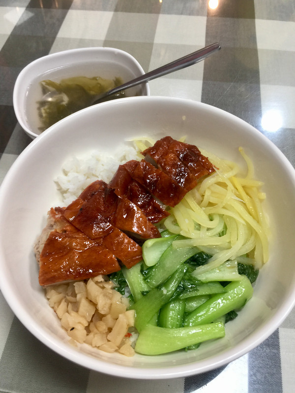招牌“烧鸭饭”¥15。饭量较少,不够可免费添加。还要什么自行车?