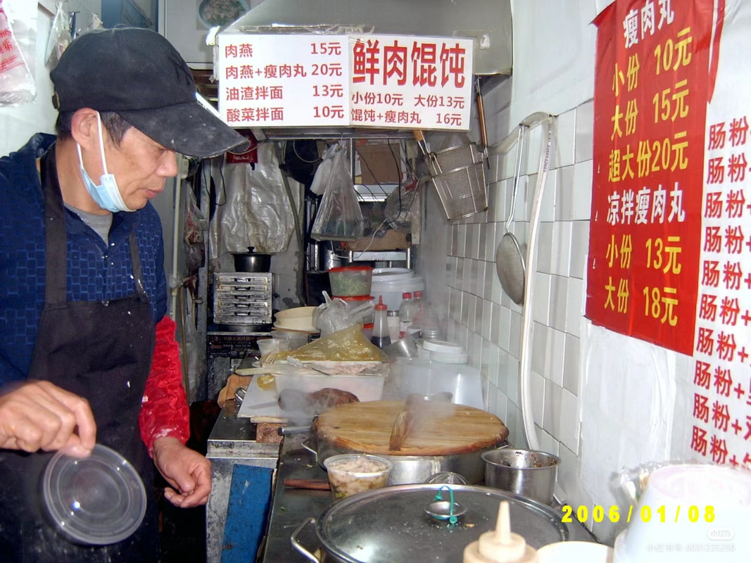 现在开店真是卷,得好吃也得好看,连个西北拉面馆也得弄得这样。而在2004年时,面馆一般是如上图所示。由陕西、安徽等地的农民工开在城镇中比较偏的陋巷中。设备设施差点,关键是低店租、低费用形成了低价格,一碗面面加馄饨¥15元有一大碗。