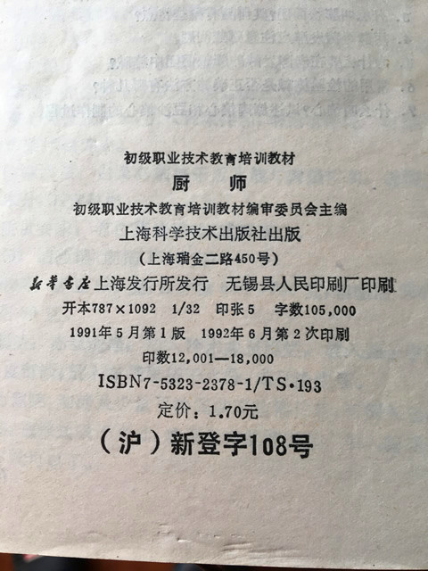 这几天一直在看这两本书,深感这两本书的价值太高了。左边这本书是三十年前上海科学技术出版社出版的“厨师初级职业技术教育培训教材”,右边这本书是山东科学技术出版社出版的资料性“问答”。